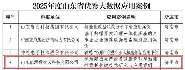 近日,山东省工业和信息化厅公示了2025年度大数据产业“三优两重”项目名单,齐鲁云商子公司数智云科凭借硬核实力一举入围三项榜单——成功获评“山东省重点数厂”,自主研发的“大模型应用平台V1.0”入选山东省优秀大数据产品名单,其“预焙阳极生产设备健康管理与预测性维护关键技术研究与应用案例”同步入选山东省优秀大数据应用案例。