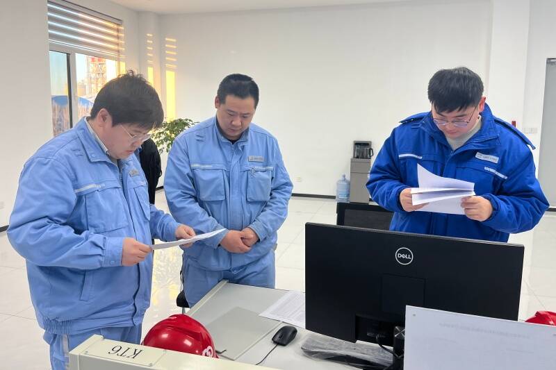 “辊压机电机定子绕组温度报警与台账记录不一致,请立即进行检查确认。”12月25日,该公司安全环保部联合技术(信息)部深入坤昱岩基钙石加工线现场,对中控DCS报警系统、DCS安全联锁系统、工艺指标卡片及相关记录管理台账等进行现场指导。